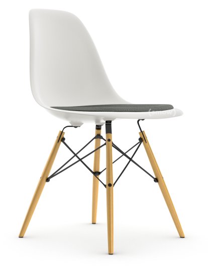 Eames Plastic Side Chair RE DSW White non-RE|With seat upholstery|Nero / ivory|Standard version - 43 cm|Ash honey tone