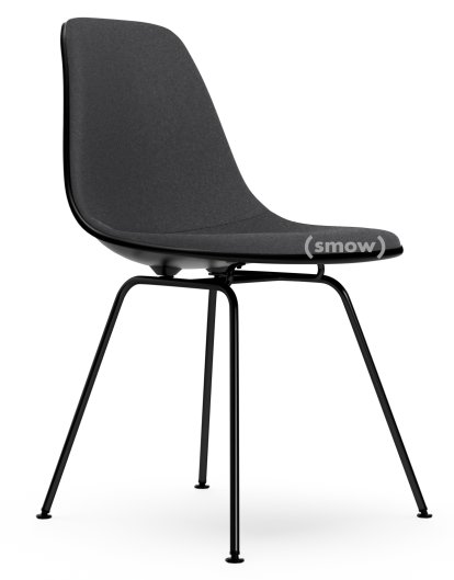 Eames Plastic Side Chair RE DSX, Deep black, With full upholstery, Dark grey, Standard version - 43 cm, Coated basic dark