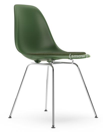 Eames Plastic Side Chair RE DSX, Forest, With seat upholstery, Nero / forest, Standard version - 43 cm, Chrome-plated