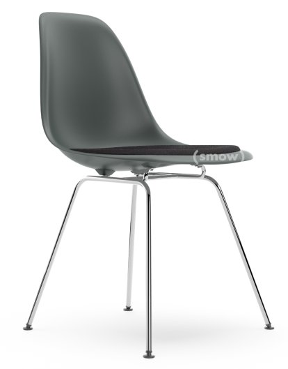 Eames Plastic Side Chair RE DSX, Granite grey, With seat upholstery, Dark grey, Standard version - 43 cm, Chrome-plated