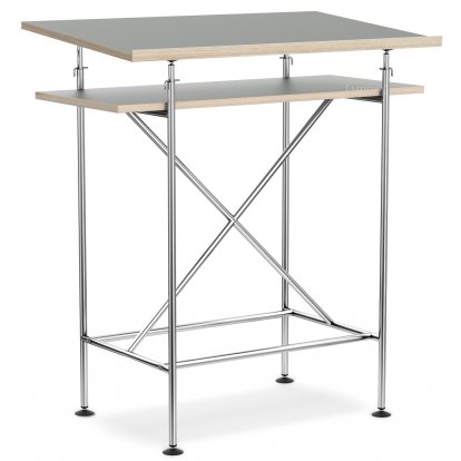 High Desk Milla, 70cm, Chrome, Linoleum ash grey (Forbo 4132) with oak edges