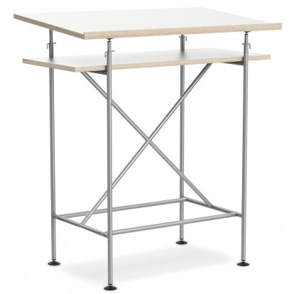 High Desk Milla, 70cm, Silver, White melamine with oak edges