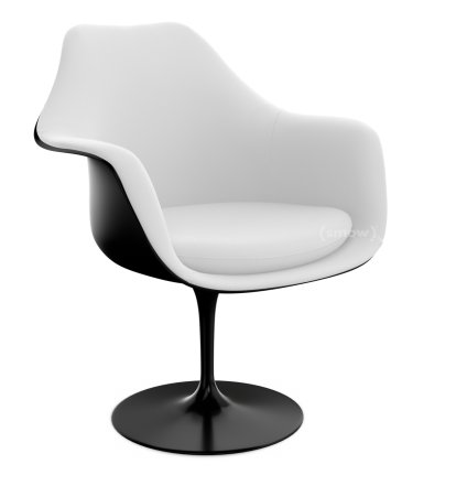 Saarinen Tulip Armchair, Swivel, Upholstered inner shell and seat cushion, White, Black (Tonus 128)