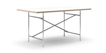 Eiermann Table White melamine with oak edge|160 x 90 cm|Chrome|Angled, centred (Eiermann 1)|110 x 66 cm