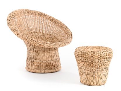 The Rattan Chair E 10 was created in 1949 by the architect and designer Egon Eiermann. Produced by Richard Lampert, who established their reputation with the Eiermann table base, the E 10 armchair proves that the German designer was talented at working with a wide range of materials and processes. The necessary stability within the E 10 is achieved solely through the braided structure, a structure which in addition bequeaths the object its unusual and organic form, in which you can sit comfortably and relax. Reminiscent of both a funnel or an abstract flower the Eiermann chair not only possesses a calming character but is visually very pleasing and is thus a genuine enrichment for any space, particularly when accompanied by the E 14 stool.