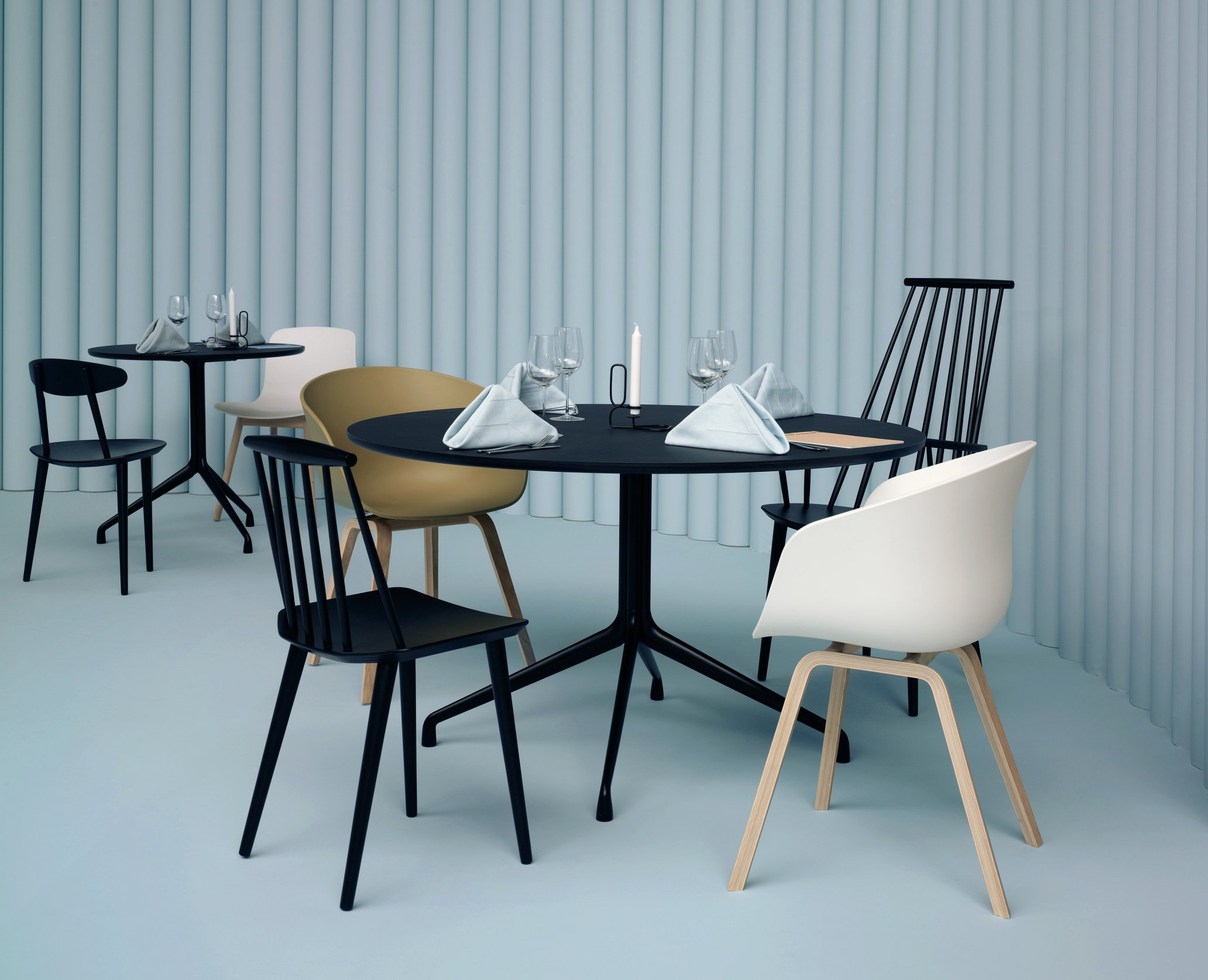 Sustainable still life: The HAY J104, which has been awarded the EU Eco Label, here combined with the Wishbone Chair from Carl Hansen