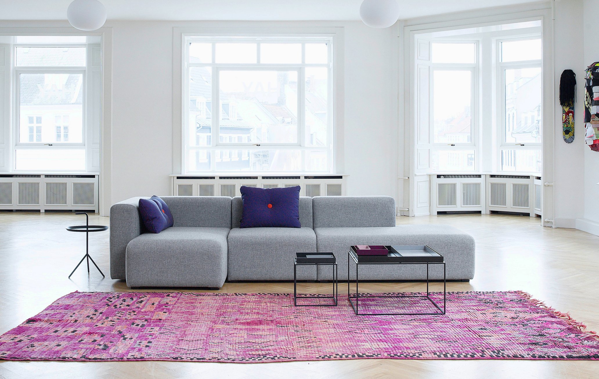 Hay living room with Silhouette Sofa, DLM Table and Moiré Kelim Carpet