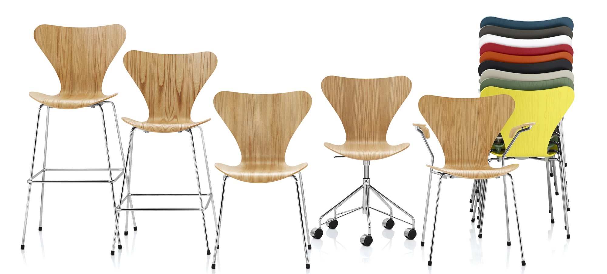 This exclusive special edition combines the legendary design of Arne Jacobsen with the unmistakable aesthetic of Verner Panton on the occasion of his 100th birthday. The limited edition collector's items shine in striking original colours from the 1970s, taken directly from Panton's visionary colour palette. Thanks to its timeless design, the chair blends elegantly into modern dining rooms, creative workspaces or prestigious conference rooms.