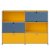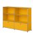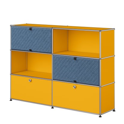 USM Haller Highboard L with two USM Haller Soft Panels, diagonal, Golden yellow RAL 1004, Blue