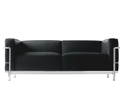 The Cassina LC3 Sofa, whether as a two-seater or three-seater, is the largest object from the LC Collection from the Italian manufacturer Cassina, a collection which is produced according to the original designs of the designer Le Corbusier. Although developed together with his cousin Pierre Jeanneret and Charlotte Perriand, Le Corbusier is often hailed alone as the creator of the popular collection, a collection which resulted in numerous successful pieces over 10 years of collaboration. Originally premièred in 1928 for the furnishing of Le Corbusier's Villa Church project, the official birth date of the LC 3 is 1929 when Le Corbusier presented a set of furniture at the Paris Autumn Salon. The design of the entire LC family matches the style of the Bauhaus, a movement which celebrated its heyday in the 1920s and which continues to captivate with its clear forms and artisanal materials. The Le Corbusier Sofa LC3 is, as well as the LC3 armchair, formed from a steel tube cage into which are placed cushions which form the seat, back and armrest and which produce an unexpectedly comfortable sitting experience. Once you sit in the Le Corbusier sofa, which differs from LC2 through its approximately 20 cm wider seats, you wont want to leave it, so comfortable are the deep backrest and the soft polyurethane foam cushions.