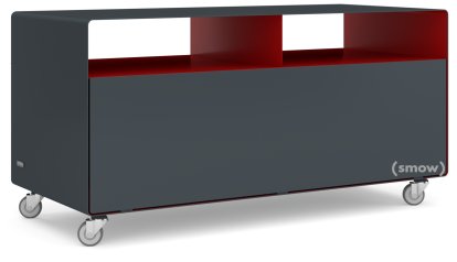 TV Lowboard R 108, Anthracite grey (RAL 7016) - Ruby red (RAL 3003), Industrial castors