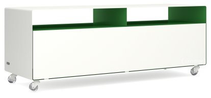 TV Lowboard R 109 Bicoloured|Pure white (RAL 9010) - May green (RAL 6017)|Transparent castors