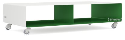 TV Lowboard R 200 Bicoloured|Pure white (RAL 9010) - May green (RAL 6017)|Transparent castors