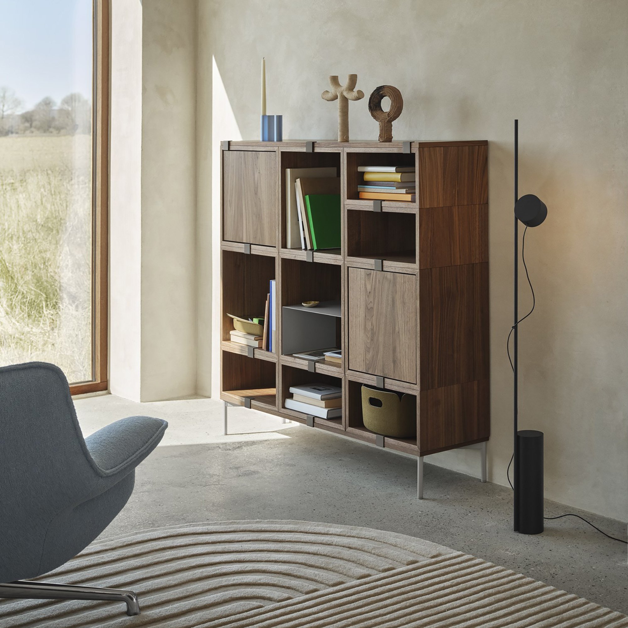 A base with feet makes a Muuto Stacked shelving unit an almost free-floating construction (whether half-height or high) that does not have to be attached to the wall - but can be.
