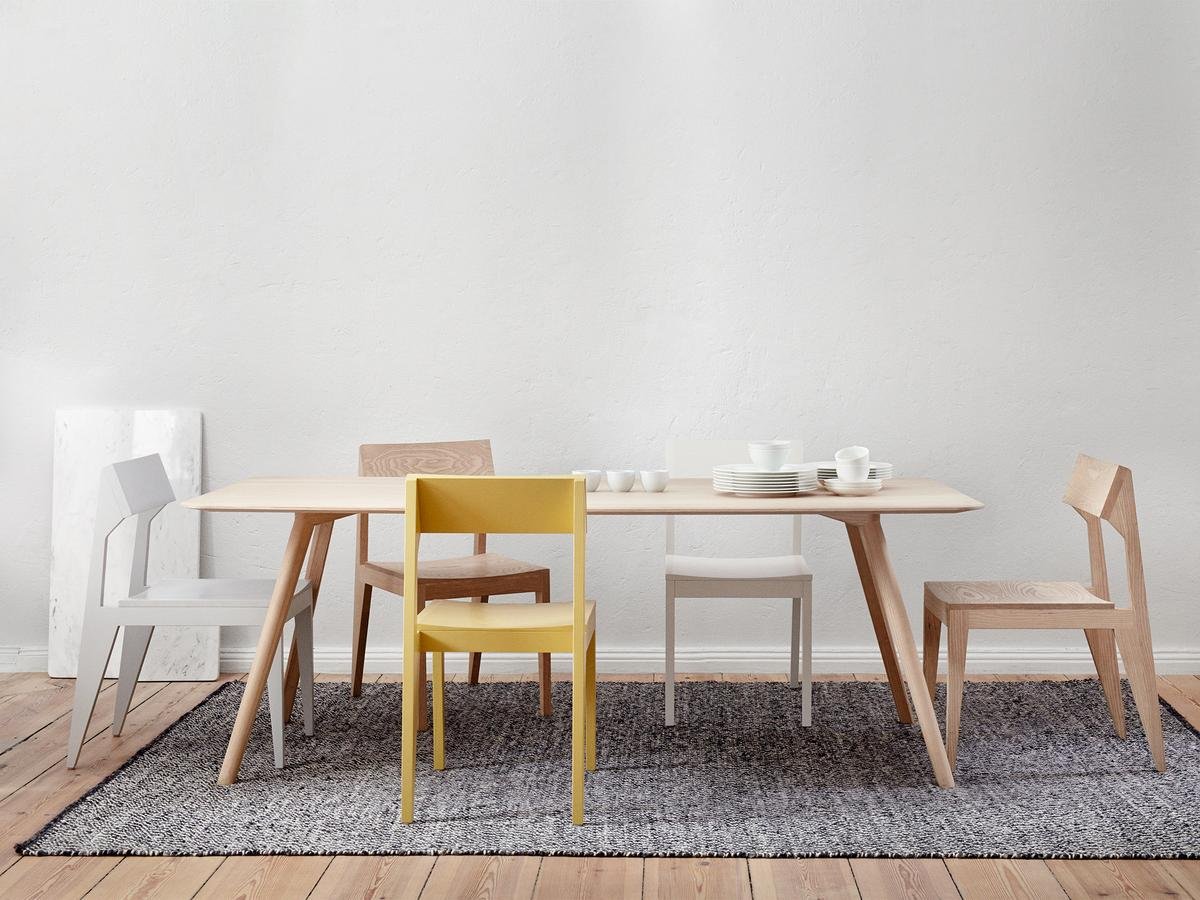 The inclined legs and the German family names are a trademark of OUT - Meyer dining table with Schulz chairs