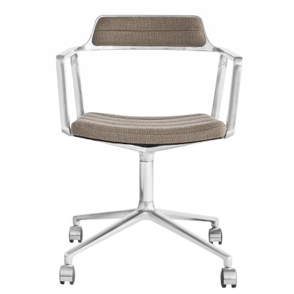 The Swivel 452 swivel chair on castors from Vipp offers first-class seating comfort thanks to its firmly defined shell shape and soft upholstery, which supports concentrated work in the home office or office. Striking details such as the filigree armrests and the polished aluminium swivel base on castors give this model a particularly airy yet timeless aesthetic. This version is a stylish business chair that combines precision craftsmanship with an ergonomic design for everyday use.