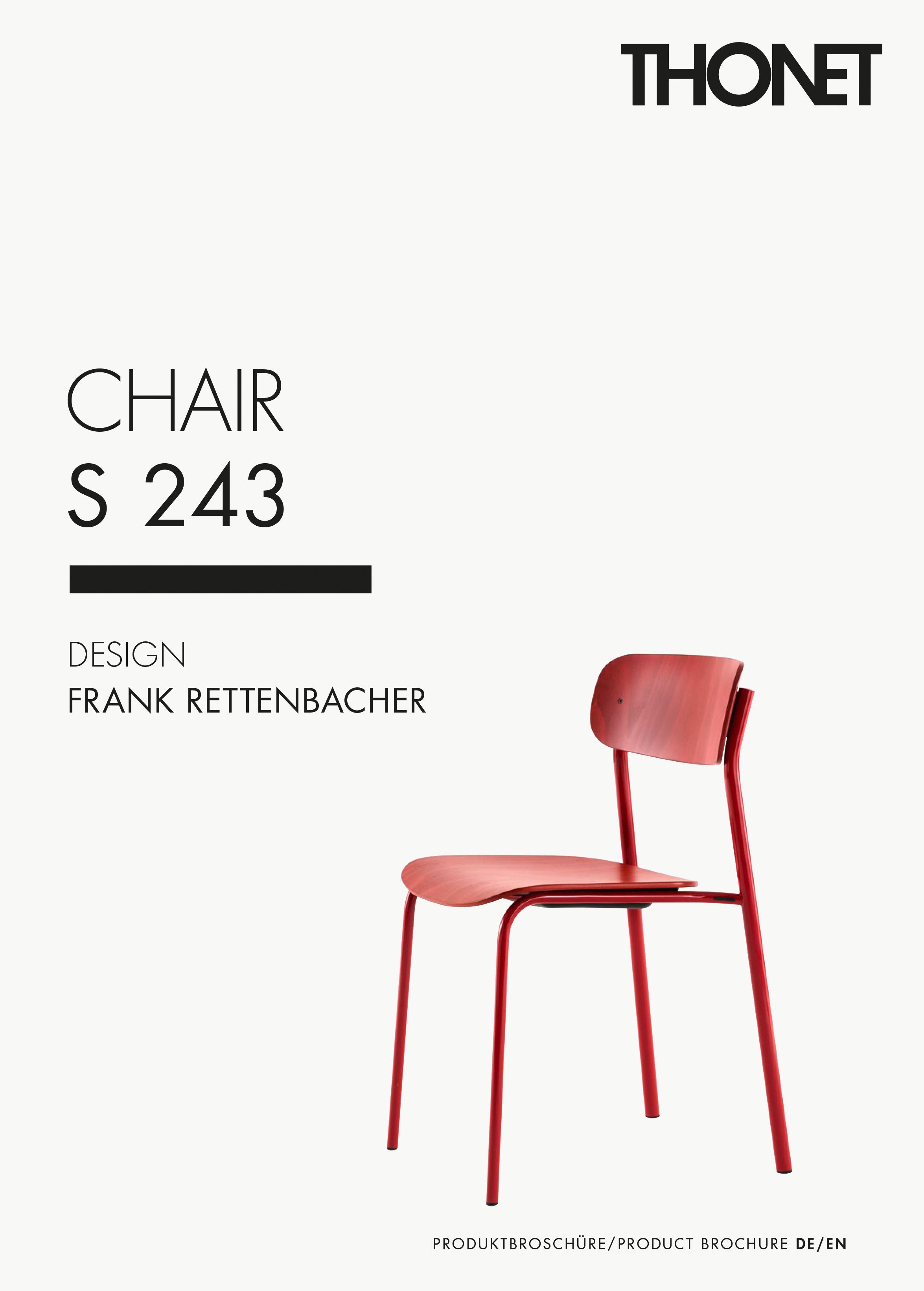 With the S 243 chair, Frank Rettenbacher combines lightness with functionality in design. Inspired by the classics from Thonet, the cantilever chairs, the chair consists of a tubular steel frame combined with moulded wood parts. The S 243 is available in various colour combinations, is stackable and can be used in a variety of ways.