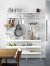 The basis of every String configuration is the side walls. Choose floor or wall ladders in different sizes and colour variants and complement the matching shelves. Many other elements, such as the wall cabinet with sliding doors or accessories such as hooks or a clothes rail, complete your individual String unit, be that for small or large living rooms, offices or hallways.