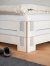 Material | Frame: FU (birch plywood) Brackets: steel, light grey powder coated (in white version) or anthracite powder-coated (in black version) Slatted mattress support: solid wood, untreated Rollable slatted base: solid wood, untreated with webbing |