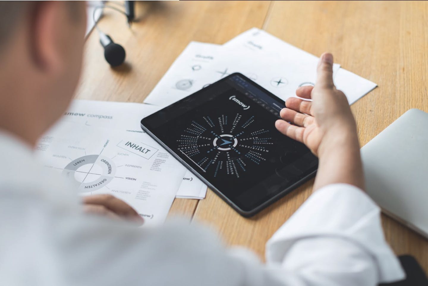 The smow approach to professional office planning is primarily based on communication: the planning process can be understood as a cycle in which ideas, proposals, specialist and background knowledge are exchanged between planners and customers in order to develop a well-founded concept. A kind of compass is used as a tool for orientation, a tool that describes the benefits of the project from the customer's perspective. smow pursues customer support as a holistic solution provider, whereby the most important questions for a clear planning assignment are always: what is the office needed for? What requirements does it have to meet? How can it support the team in their work?