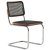 | Material | Frame: solid oak, ash or walnut wood, lacquered Seat/backrest: wickerwork with supporting fabric under the seat Base: tubular steel, chrome-plated or powder-coated in dark black Glides (optional): plastic, black |