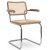 | Material | Frame/armrests: solid oak, ash or walnut wood, lacquered Seat/backrest: wickerwork with supporting fabric under the seat Base: tubular steel, chrome-plated or powder-coated in dark black Glides (optional): plastic, black |