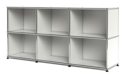 In context of a 1963 commission from the Swiss ironmongery and metalsmith concern U. Schärer Söhne the architect Fritz Haller developed the USM Haller storage system. Initially only intended for the firms own offices, Haller's system quickly developed to a contemporary design classic, helped along the way by commissions such as the furnishing of the offices of the Rothschild Bank in Paris. From its very beginnings the USM system represented a modern working culture with free and responsive room organisation. USM furniture is based on a modular principle based around three components: steel tubes form a basic skeleton, the individual tubes connected via brass connector balls. The skeleton is then completed by the addition of glass or steel panels and doors. Through this simple system USM furniture allows for a high degree of flexibility in the planning of furniture, a flexibility that includes the possibility to reconfigure an existing system should the need arise. So, for example, can through the addition of two elements an existing sideboard L (four elements) be converted to a sideboard XL (six elements). On the same basis, an existing USM Haller unit can be extended in all directions. In addition one has a choice of doors, a choice that one can always change as the situation demands.