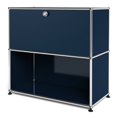 USM Haller Sideboard M, Customisable Steel blue RAL 5011|With drop-down door|Open