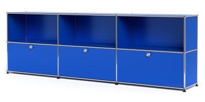 USM Haller Sideboard XL, Customisable Gentian blue RAL 5010|Open|With 3 drop-down doors