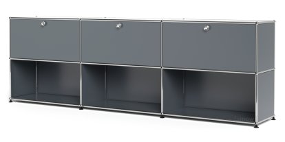 USM Haller Sideboard XL, Customisable, Anthracite RAL 7016, With 3 drop-down doors, With 3 drop-down doors