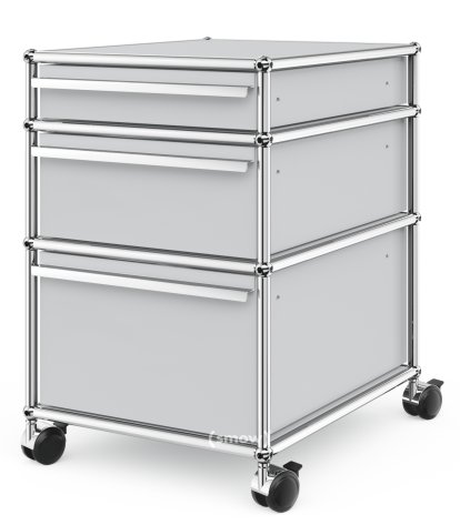 USM Haller Mobile Pedestal with 3 Drawers Type 2 (with Counterbalance), No locks, USM matte silver