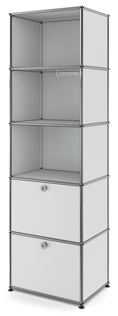 USM Haller Bookcase 50, With 2 drop-down doors, Light grey RAL 7035