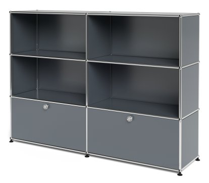 USM Haller Highboard L, Customisable, Anthracite RAL 7016, Open, With 2 drop-down doors, With 2 drop-down doors