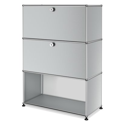 USM Haller Highboard M, Customisable, USM matte silver, With drop-down door, With drop-down door, With drop-down door