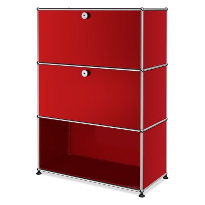 USM Haller Highboard M, Customisable, USM ruby red, With drop-down door, With drop-down door, With drop-down door