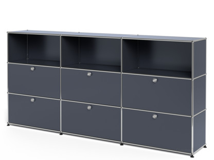 USM Haller Highboard XL, Customisable, Anthracite RAL 7016, Open, With 3 drop-down doors, With 3 drop-down doors