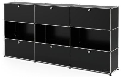 USM Haller Highboard XL, Customisable, Graphite black RAL 9011, Open, With 3 drop-down doors, With 3 drop-down doors