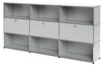 USM Haller Highboard XL, Customisable, USM matte silver, With 3 drop-down doors, With 3 drop-down doors, With 3 drop-down doors