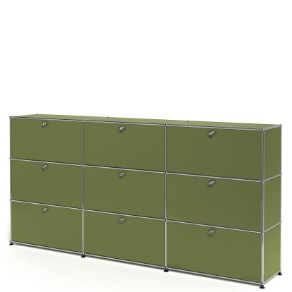 USM Haller Highboard XL, Customisable Olive green RAL 6003|With 3 drop-down doors|With 3 drop-down doors|With 3 drop-down doors