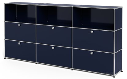 USM Haller Highboard XL, Customisable, Steel blue RAL 5011, Open, With 3 drop-down doors, With 3 drop-down doors