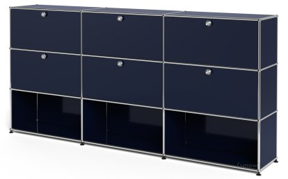 USM Haller Highboard XL, Customisable Steel blue RAL 5011|With 3 drop-down doors|With 3 drop-down doors|Open