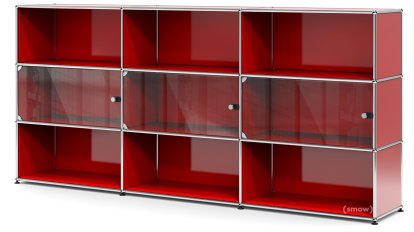 USM Haller Highboard XL with 3 Glass Doors, without lock, USM ruby red