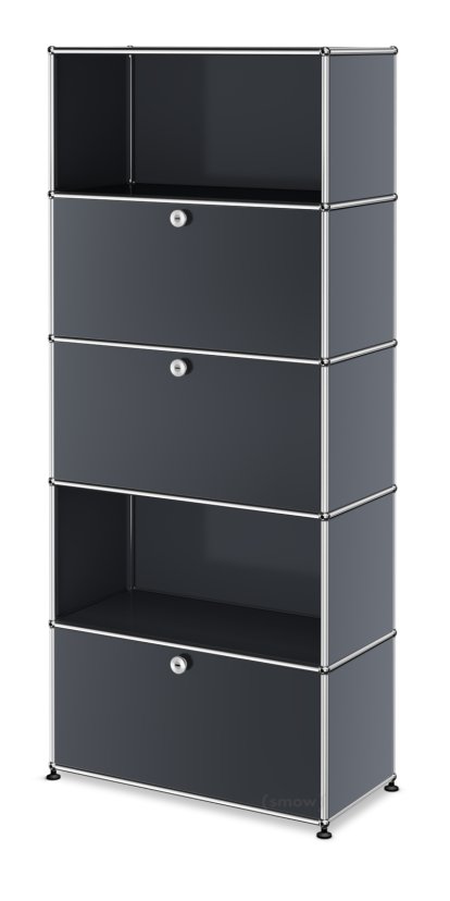 USM Haller Storage Unit M, Customisable, Anthracite RAL 7016, Open, With drop-down door, With drop-down door, Open