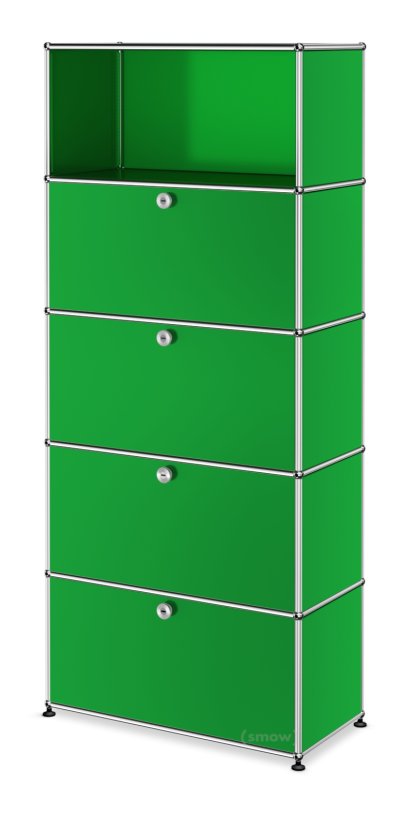 USM Haller Storage Unit M, Customisable, USM green, Open, Open, With drop-down door, With drop-down door
