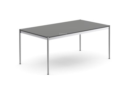 Although best known for the modular furniture system the USM Haller table is a central feature of the USM programme. The sleek chrome plated table frame beautifully reflecting the aesthetic elegance of the USM Haller units. Developed in 1963 by Swiss architect Fritz Haller, System USM Haller revolutionised office furniture of the period with its enviable ability to fit any situation and any given task: characteristics which can be be effortlessly carried over to the USM Haller table. Available in a range of lengths and depths and with a wide selection of surfaces there is a USM Haller for everyone and every occasion; and as befits a component of a modular system not only can every USM Haller table be complemented by a range of accessories but also used in varying functions, be it as dining table, conference table or desk.