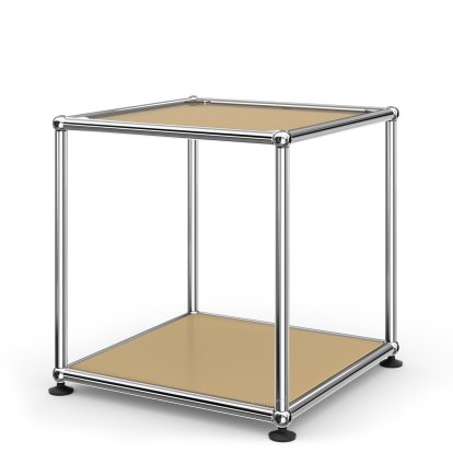 USM Haller Side Table 35, Upper panel glass, lower panel metal, USM beige
