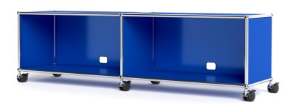 USM Haller TV-/HiFi-Lowboard, Customisable, Gentian blue RAL 5010, With 2 drop-down doors, With cable entry hole bottom centre
