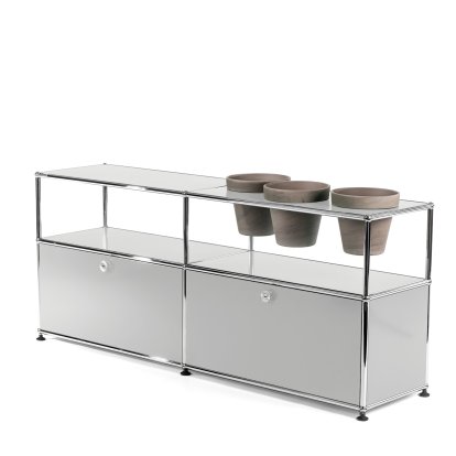 USM Haller Plant World Sideboard, Light grey RAL 7035, With 2 drop-down doors, With 3 pots on the right, Basalt