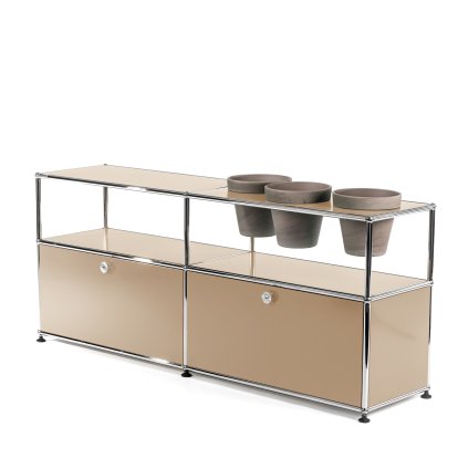 | Variants | Optionally available with open compartments at the bottom or 2 drop-down doors, with 3 pots on the right/left or with 6 pots over the entire horizontal. Pots available as with terracotta or basalt coloured variants. Also available without plant pots as the USM Haller Sideboard L with extension and many other individual configurations. |