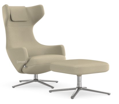 Grand Repos Lounge Chair, Chair Grand Repos & Ottoman, Fabric Dumet beige melange, 45 cm, Polished